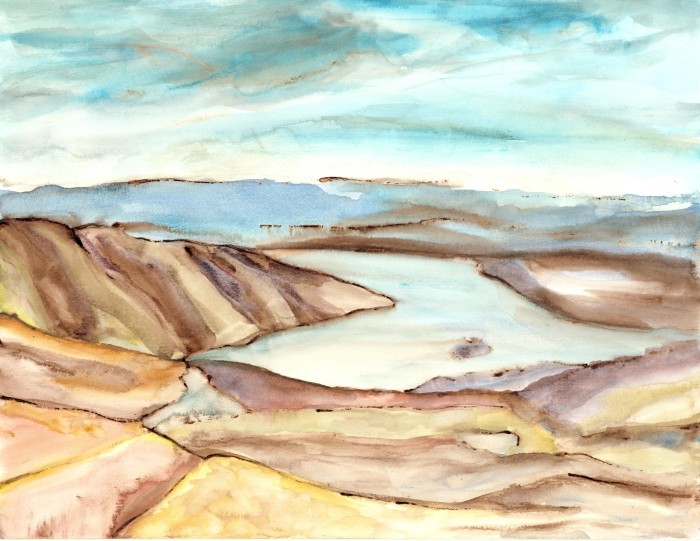 Wanaka, Brou de noix et aquarelle sur papier, 30 × 24 cm (2020)