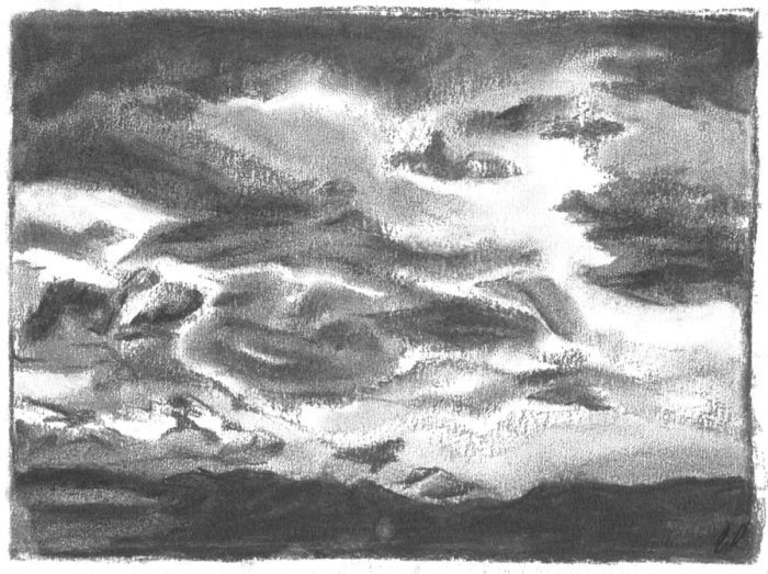 Nor'west sky, fusain sur papier, 24.2cm x 32cm (2019)